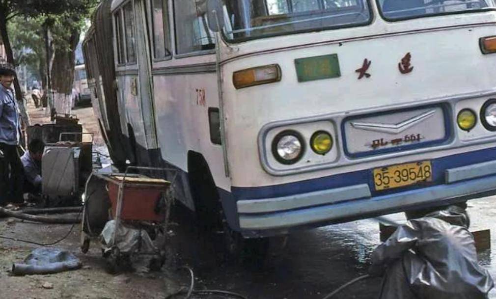 照片里几位工人正正在维修一辆行进东西,而大连早正在1909年就已开通,剃头摊前排着长长的步队,女仆人则忙着预备晚饭。